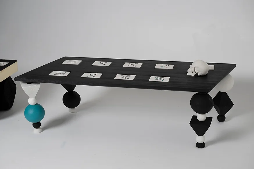 Одним из российских участников ярмарки -Omelchenko Gallery-представлены работы российской художницы Mojjoker. Она переосмыслила образы и истории героев трагедии “Гамлет” и представила их в виде арт-инсталляции, которая состоит из двух столов и серии картин. Работающая под псевдонимом Mojjoker Екатерина Доронина выбрала жанр mixed media: она не просто придумала арт-объекты, а рассказывает с их помощью истории и вовлекает зрителей в интерактивную игру. Екатерина проанализировала знаменитую шекспировскую пьесу и вывела на первый план Йорика — череп, найденный Гамлетом на кладбище, а вокруг него “собрала” всех остальных героев. “С помощью новых форм, текста, а также используя современные техники и нетрадиционные материалы, у Екатерины получается раскрыть тему смерти с иронией и надеждой на будущее”, — считает Анастасия Омельченко, основательница Omelchenko Gallery, куратор и художник.