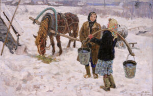 For the work by Alexei and Sergei Tkachev “At the Well” (Winter), 1980, canvas, oil, 70×107 cm;