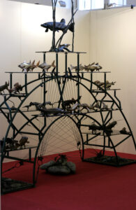 For the work ” Prayer for Travelers”, 2007, bronze, stone, wood, 40x56x20.