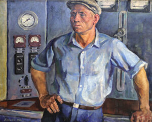 Altaev S.P., Honored Worker of the Russian Federation, for his work “I.K.Skrynik, electrician of the locomotive depot of the Podmoskovnaya station”, canvas, oil on canvas, 80×100 cm, 1970;