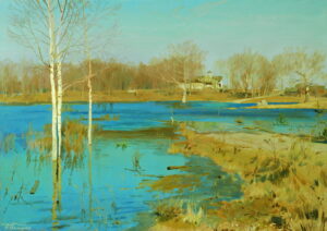 Награждается Народный художник РФ Белюкин Дмитрий Анатольевич, Россия, г. Москва, за работу «Усадьба Ганнибалов «Петровское». Весенний разлив», 75х100см.,холст/масло,2005г.