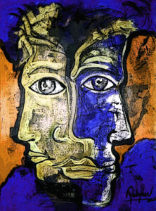 雷納托·羅迪納,巴西,作品《面孔》,2015 年,混合技術,版畫、丙烯、蠟,100 x 70 釐米。